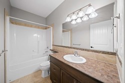 Legally Suited Home in Timberlands! Upstairs is ready for immediate possession, while the legal basement suite presents a fantastic opportunity for investors, downsizers or first time buyers! This beautifully maintained property features teak hardwood floors, air conditioning, a heated garage with built-in desk/workspace, two gas fireplaces, in-floor heat in the basement with trendy acid-washed floors, central vac, dual 50-gallon hot water tanks, and so much more. Main/Upper level just had all new carpets installed in bedrooms and stairs! Open-concept kitchen with dark cabinetry, tiled backsplash, stainless appliances, granite sink, walk-in pantry & island seating. The dining area flows into the South-facing living room with stone-detailed gas fireplace. Enjoy the south facing private upper deck with BBQ gas line, enclosed storage underneath, and fenced pet-friendly yard space. 2 bedrooms on the main with a 4PC bath in between. The primary bdrm above the garage features a walk-in closet + 4PC ensuite with tiled jetted tub! Lower level contains a convenient laundry/utility area with sink, shower & toilet—perfect for cleanup after garage projects. The legal basement suite features a private entrance modern design with in-floor heat & gas fireplace. Beautiful kitchen with rich cabinetry, stainless appliances, tiled backsplash, island & granite sink. Spacious bedroom (12’ x 11’7”), 4PC bathroom, separate laundry & large storage room and comes with two private parking stalls. Prime Timberlands Location with Clearview Market a short distance away! Incredible walkability to schools, shopping, playgrounds, and parks! Whether you’re an investor, a first/second-time buyer, a family with aging parents, or a couple this home checks all the boxes. With professional updates and strong rental appeal, this property is well worth a look!