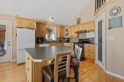 Welcome to your dream escape at Braseth Beach - an exclusive gated lakefront community on the north shore of Buffalo Lake. Tucked into a beautifully landscaped lot with flat walkout access right to the shoreline, this one-and-a-half-storey luxury home is built for year-round comfort, connection, and relaxation. Inside, you'll find a warm and inviting open-concept main floor with a stunning wall of south-facing windows that frame panoramic lake views. The classic brick-faced fireplace adds charm and coziness, while the eat-in kitchen with center island and corner pantry makes entertaining effortless. The spacious primary suite is a lakeside sanctuary - complete with high ceilings, walk-in closet, updated ensuite with jetted soaker tub, and garden doors opening to your private deck. Imagine waking up to tranquil water views every day. A second tucked-away bedroom with a nearby full bath offers great privacy for guests or family. Upstairs, the open loft adds even more flexibility - a perfect spot for a quiet reading corner, home office, or bonus space for visitors. The fully finished walkout basement includes two additional bedrooms, a theatre room, large living space, tons of storage, and a cold room - plenty of room for family, hobbies, or hosting. The lower bathroom features a custom shower with a beautiful tile surround and bench-type seating, adding both style and convenience. Step outside and walk straight onto your own beachfront paradise. Enjoy the spacious upper deck, perfect for taking in the breathtaking lake views, while the covered patio below offers a shaded retreat. An enclosed seasonal room provides an ideal escape from the elements when needed. This property also includes a heated, oversized detached garage with room for two vehicles, a shop area, and custom workbench - perfect for your tools and toys. Braseth Beach is a true hidden gem, offering a secure, community-oriented feel with amenities like a guest RV park, playground, and boat launch. Just 15 minutes to Bashaw for all your essentials. Buffalo Lake offers four seasons of fun - boating, swimming, fishing, skating, snowshoeing, and so much more - making it the perfect place to enjoy every month of the year. Meticulously maintained and truly loved, this home shows undeniable pride of ownership - ready to be passed on to someone who will cherish it just as much. Lakefront homes here are rarely available, because once you're here, you won't want to leave.