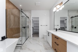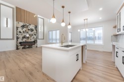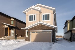 Experience upscale living in this brand new two storey home in Nisku offering 2,600 sq. ft. of luxurious, well designed living space. The main floor features 9 ft ceilings, an open to below layout, and oversized windows that fill the home with natural light. The white kitchen impresses with marble countertops, a large island, and a walk through spice kitchen and pantry, opening to a bright dining area and cozy living room with a marble surrounded fireplace. A main floor bedroom and full bath add flexibility. Upstairs offers four spacious bedrooms, including a primary suite with a walk in closet and spa inspired 5 piece ensuite, plus an additional ensuite bedroom, two more full bathrooms, and convenient upstairs laundry. The unfinished basement with side entrance provides future potential, while the covered deck is perfect for relaxing. Located minutes from the airport and nearby playgrounds, this brand new home is ideal for families looking to create lasting memories.