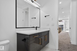 Welcome to your extraordinary future home in IRVINE CREEK North, Leduc county – a stunning blend of LUXURY, MODERN DESIGN, and INCOME POTENTIAL! This custom prairie-modern 2-storey offers almost 4000 SQ. FT. of finished space. The STRIKING EXTERIOR boasts woodgrain cladding, sleek panels, vinyl siding and stone accents. Inside, 9 ft CEILINGS and tall back windows create a bright, airy feel. The MAIN FLOOR features a SPICE KITCHEN, MUDROOM, DEN, BEDROOM WITH WALK-IN CLOSET, FULL BATH, and two “OPEN TO BELOW” SPACES. Upstairs, enjoy TWO MASTER SUITES with SPA-LIKE ENSUITES, TWO MORE BEDROOMS, BONUS ROOM, LAUNDRY, and a showstopping CATWALK. The FULLY FINISHED LEGAL 1-BED BASEMENT SUITE with BAR offers RENTAL OR MULTI-GENERATIONAL POTENTIAL. ENERGY-EFFICIENT, FIRE SPRINKLER-EQUIPPED, and complete with a CHARMING DROPPED DECK, this home is a rare gem. Embrace MODERN ELEGANCE, COMFORT, and CONVENIENCE in this exceptional Irvine Creek residence!