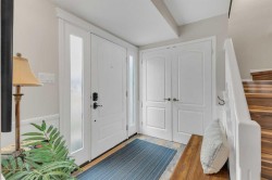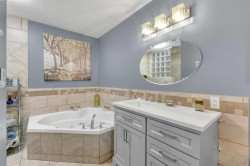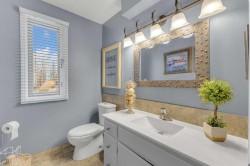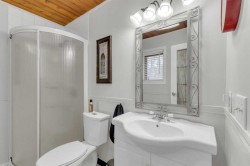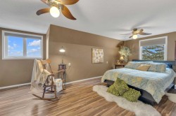 MINT condition and minutes from Red Deer! This exceptional partial WALKOUT home blends craftsmanship, comfort, and privacy surrounded by mature trees and stunning views. Thoughtfully renovated and 2x6 constructed, it features a durable METAL ROOF, in-floor heat plus forced air, skylights, glass block accents, and large windows that fill the home with natural light. The open-concept kitchen with built-in appliances flows to multiple decks—perfect for relaxing or entertaining while taking in the serene TREED setting. With four bedrooms total, one being a flexible lower-level office/bedroom, every detail shines with pride of ownership. The detached structure matches the home’s quality with in-floor heating and can serve as a professional office or easily converted GUEST SUITE. Beautifully landscaped with a firepit, large carport, double garage, and upper deck—plus just minutes to the ski hill and city amenities. Truly one of a kind.