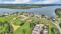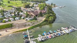 Discover Your Dream Home by the Lake. ~ This beautiful Bi-Level home features 3 Bedrooms ~ a Den/Office ~ 2 Bathrooms ~ This is the perfect time to dive into the LAKE LIFE ~ even year-round if you desire ~ Upon entering the warm and inviting interior, you're greeted by a generous foyer that leads to the expansive main floor. Here, the stunning vaulted wood plank ceilings and elegant engineered hardwood flooring will capture your attention immediately ~ The living room and dining room are ideal for entertaining, offering excellent sight lines from the kitchen ~ The kitchen boasts modern, newer high-end appliances (2024), ambient under-cabinet lighting, and a generously sized corner pantry ~ Step onto the expansive covered back deck and immerse yourself in the beauty of the outdoors. Whether you love hosting barbecues or savouring your morning coffee while watching the birds, you can appreciate these moments regardless of the weather conditions ~ The primary bedroom is also located on the main level and boasts a generous 3-piece bathroom, featuring a tiled shower and a bench for added comfort ~ Nearby, you will find the main floor laundry area, conveniently positioned next to your walk-in closet, which provides ample storage space for all your needs ~ Downstairs, offers even more space, featuring a Rec Room and a Den/Office for your work-from-home needs or hobbies. Two additional Bedrooms on the lower level, fantastic for family or guests, keeping them tucked away from the Master for privacy (and quietness!). A full 4-Piece Bath with shower/tub combo completes the lower level ~ Out front is a spacious utility shed available for storing tools and recreational items ~ With the condominium fees covering snow removal and basic lawn maintenance, you'll have very little yard work to worry about! These fees also include water, sewer, trash services, professional maintenance, and contributions to the reserve fund ~ Whispering Pines features a variety of fantastic amenities, ensuring there’s something enjoyable for every member of the family. There is an array of activities to do, including an 18-hole golf course, a 55-slip marina, a clubhouse with a restaurant and bar, an indoor pool and hot tub, a private beach, sports courts, a playground, organized activities, and much more! Don't overlook the winter season! It's the perfect time to bring out the sleds, lace up your skates, or head to the lake for some ice fishing ~ Just a short drive to Gasoline Alley makes this the ideal location ~ Come and experience all that this incredible home and community have to offer