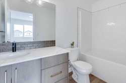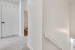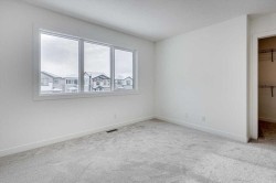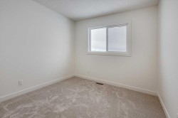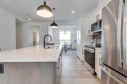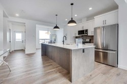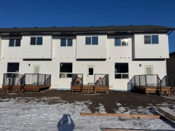 NO CONDO FEES! Stylish, modern 2 Storey Townhomes in the great location of Liberty Landing. Say Goodbye to the stress of older homes & get Alberta New Home Warranty plus additional builder warranty on these Brand New homes built by Asset Builders Corp, winner of 2024 Builder of the Year award! Step onto your 7'x7' front deck, into your spacious entry & you are greeted by a bright & spacious open layout on this main floor. Check out all the natural sunlight through these large energy efficient triple pane windows & you will love this amazing vinyl plank flooring throughout w/cushy carpet in the bedrooms upstairs. The kitchen is the heart of the home, with a large island w/extended Quartz countertop (perfect for your stools, kids homework sessions, or long chats while cooking), built in pantry area, & 4 appliances included. Dining room will fit your large tables & extra family members. The favorite room of all parents out there is this separate mudroom w/half bath @ the back door that leads to your 10'6"x 10' south facing back deck w/aluminum railing & sunny south facing backyard, with fence between neighbors (done down sides only with back section open) with 2 car parking off the Paved back lane. Upstairs you will find the area for your future washer & dryer, 2 good sized bedrooms, a full main bath + a primary bedroom that features a large walk in closet & full 4 piece ensuite. Extra bonus is the huge hallway closets that make the best use of space! Downstairs is open for your inspiration...planned for future bdrm, bath & family room w/plenty of natural light & extra storage. High efficient furnace & 80 gallon HWT so you never run out of hot water! GST included w/rebate to builder. This family neighborhood that's close to shopping, food & the hwy! Single detached garage could be built in future. Interior finished pictures are from previous unit with the exact same layout & similar colors.