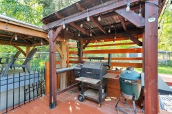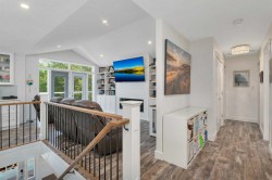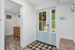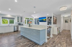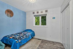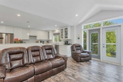 This stunning acreage is located in the Blindman Ridge subdivision, just minutes from Red Deer and all on pavement. Private, tranquil and surrounded by trees, this walk-up bungalow has been updated and modernized and is well suited for families or dream retirement home. There is a den/bedroom at the main level walk in, with a gorgeous 3 piece bathroom with tiled shower and bright and spacious family room with gas fireplace. The Laundry area and mudroom offers tons of space and storage closets with access to the backyard and to both the heated attached 21x20 garage and the 36x26 heated shop c/w 10' ceilings and 220 power. Upstairs is an open concept and very bright living space with vaulted ceilings and built in cabinetry in living room There is a fantastic kitchen space with quartz counter tops, tons of cabinets and high end s/s appliances. Windows surround the dining area allowing beautiful views to the outdoor space. There are 3 bedrooms on the main floor. The primary is a good size with built in wardrobes offering tons of storage & a beautiful 4 piece ensuite with tiled shower. 2 additional bedrooms share the spacious 4 piece bathroom with soaker tub. The deck from the living room has been completed redone and there is an expansive lower level deck in the backyard with hot tub and lots of room for outdoor furniture. The surrounding outdoor space has a fenced area with dog kennel and there is a play center and trampoline for the kids. There is ample space for additional outbuildings & RV parking. This property has been well cared for and it shows.