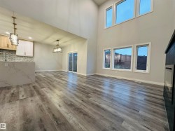 Experience refined living surrounded by nature in this custom-built 2,394 sq.ft, 28 pocket lot home. 4 bedrooms | 3 baths | bonus room | FACING A BEAUTIFUL POND & WALKING TRAILS, in the most desirable community of Tonewood, Spruce Grove. Featuring: 9 ft ceilings on main floor & basement / main floor bedroom and full bath / open-to-above living room with a striking feature wall and electric fireplace / chef's kitchen boasts quartz countertops, walk-in pantry, and full appliance package / 3 bedrooms upstairs including an oversized primary retreat with a spa-inspired 5-piece ensuite / vinyl flooring on the main floor / plush carpet upstairs / separate entrance to the basement / large windows that capture stunning pond views. Nestled in a vibrant neighborhood close to schools, parks, shopping, and all amenities, this pond-facing dream home truly has it all.