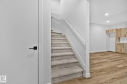 The Baci model welcomes you in with a spacious foyer and mudroom, leading into an open-concept kitchen, nook, and living room with soaring ceilings and a striking open-to-above design. A built-in pantry and central island enhance the kitchens functionality, perfect for everyday living and entertaining. Upstairs features two secondary bedrooms, a laundry closet with sink, and a serene primary suite with double sinks, tiled shower, and a walk-in closet. The home also includes a legal basement suite with one bedroom, a living room, 3 piece bathroom, and full kitchen.