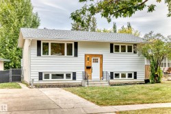 Welcome to this bi-level home on a quiet, tree-lined crescent in the heart of Braeside. Offering 4 bedrooms and 2 full baths, this home has been updated with new vinyl plank flooring, fresh paint, a new furnace (2021), and hot water tank (2021). The bright main floor features large windows, a cozy living and dining area, and a galley-style kitchen with plenty of cabinet space. Step out to the massive three-season sunroom and enjoy the view of your private yard with deck, gazebo, and mature landscaping. Two bedrooms and a 4-piece bath complete the main level. The fully finished basement includes two more bedrooms, a 3-piece bath, a spacious family room, and large laundry/storage space. Located just minutes from schools, parks, Fountain Park Recreation Centre, and with quick access to St. Albert Trail and Anthony Henday, this home is move-in ready and waiting for your personal touch.