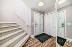 Bright, stylish, and move-in ready! This immaculate 2-storey home offers an open-concept main floor designed for everyday comfort and easy entertaining. The spacious layout includes a welcoming living room, dining area, and modern kitchen with a central island—perfect for gatherings. Main floor laundry and a convenient 2-piece bath add to the functionality, while patio doors lead to a large deck ideal for outdoor living. Upstairs, the primary suite features a walk-in closet and ensuite, complemented by two additional bedrooms and a 4-piece bath. The nearly finished basement expands your living space with a generous family room, extra bedroom, 4-piece bath, and plenty of storage. Recent updates include new carpet and vinyl plank flooring, fresh paint, upgraded appliances, modern lighting, new plugs and switches, plus central air conditioning. All this in a family-friendly neighborhood with a school, park, and walking trails nearby—offering the perfect blend of comfort, convenience, and community.