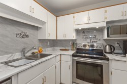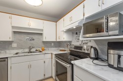 LOW STRATA FEE, WELL MAINTAINED BUILDING!! Spacious and well-designed 2-bedroom, 2-bath apartment in a prime central location, just steps from shopping, restaurants, and transit. This well-managed building offers peace of mind, while the unit features a functional layout, in-suite laundry, and plenty of natural light. Unit features, recent flooring upgrades counter tops and light fixtures! Perfect for convenience and comfort don't miss this opportunity!
