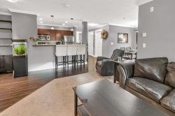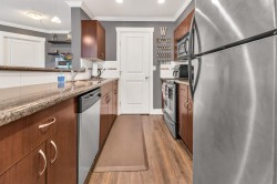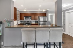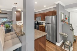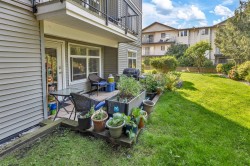Welcome to The Brixton! This bright and spacious 2 bed, 2 bath end unit offers nearly 1100 sq ft of open living with large windows throughout and excellent privacy. The kitchen features granite countertops, stainless steel appliances, and a convenient breakfast bar that opens to the main living area—perfect for entertaining. Step out to your private 10x12 walk-out patio with direct access to a grassy area, ideal for pets, kids, or quiet mornings with coffee. Both bedrooms are generously sized, and the layout offers great separation and functionality. This unit also includes 2 underground parking stalls and a storage locker. Enjoy the comfort of a well-maintained building in a prime central Abbotsford location, close to shopping, parks, schools, and transit. A rare and desirable home!