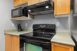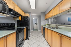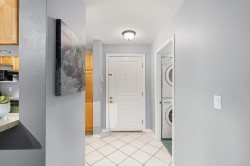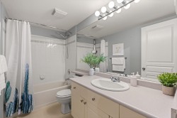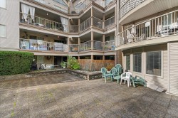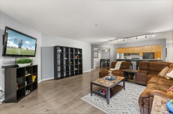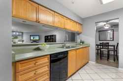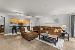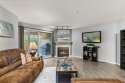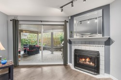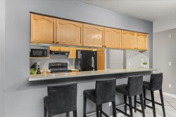 Aspen Creek BEAUTY, made for entertaining! The LARGEST 2BD 2BA condo in the bldg, offering complete Privacy & direct access, PLUS you only have neighbor on 1 side (opposite the bedrooms!). Fit for a king, this unit feat. open-concept living w/ galley-style kitchen & HUGE eating bar, a MASSIVE livingrm w/ gas FP that heats the whole place (gas incl. w/ maint.fee!), RARE semi-enclosed Dining area w/ room for hutch, & huge PRIVATE patio w/ over 260 sq. ft. of outdoor space to relax & enjoy the sounds from the Greenspace. Large master w/ Ensuite, good-sized laundry rm PLUS a storage locker & TWO parking spaces, & pets are allowed! Clubhouse next door has lounge, FP, pool table, kitchen & huge patio. Fitnesss rm & guest suite as well. PERFECT central location w/ everything at your fingertips!!!