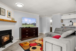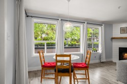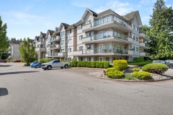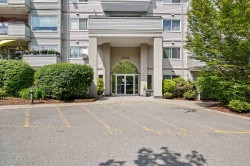 Stunning Fully Renovated 2BR/2BA Condo at College Park Place! This beautifully updated unit features high-end flooring,Appliances, modern kitchen cabinetry & countertops, and stylish bathrooms. Crown mouldings and premium paint throughout a spacious living room with a cozy gas fireplace. Enjoy a wrap-around balcony overlooking a quiet, private green space—perfect for morning coffee.Includes two parking spots (one covered) and ample visitor parking. Conveniently located near University of the Fraser Valley, Abbotsford Sports Arena, and quick HWY1 access. Pets and rentals allowed.Don't miss this opportunity before it's gone!