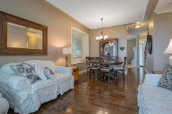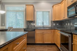 WOW! Talk about privacy! Peace and quiet with no traffic. Possibly the best location in King’s Gate! Super clean 3 level end unit townhome boasting Valley & Mountain views from all patios and decks (North shore mountains). Hardwood floors, 9ft ceilings, crown mouldings, family room & den on main floor. Master suite has large walk-in closet & easily accommodates king sized bed. Visitor parking just steps away. RV parking avail. No age rest + 2 pets ok. Walk to Ledgeview Golf Course. OPEN HOUSE SUNDAY NOVEMBER 30 2PM - 4PM