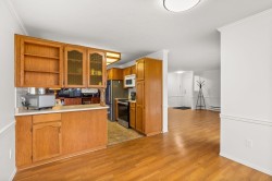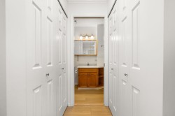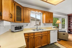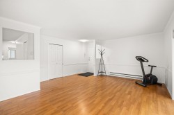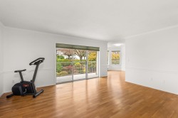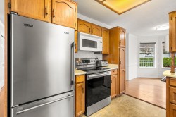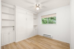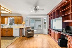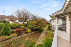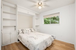 Originally the Developer's Unit! You'll love all the extra details in this 2 Bed/2Bath END UNIT in the desirable Trafalgar Park community. Drenched in light from the many windows, this spacious home has a huge great-room living/dining area, PLUS a large family rm w/ a gorgeous dark wood built-in entertainment unit. Sprawling master w/ dbl closets & Ensuite, plus back-door access to outdoor garden area. 2nd bedroom w/ another built-in wood unit w/ Murphy bed creates versatility as a functional office space, guest bedroom, or whatever suits your needs! Fresh paint, new floors, huge laundry room w/ shelving, PLUS a bonus storage room conveniently located on the patio. Heat & Electricity incl.in Strata fee. Pets allowed, & just 1 owner must be 55+. 2 parking spots, Clubhouse & Guest suite too!