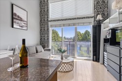 Top-floor condo in a fantastic Central Abbotsford location—walk to McCallum Junction, UFV, ARHCC, restaurants & shops, with quick access to Hwy 1! This bright, modern 501 sqft unit features 13ft ceilings, stainless appliances, granite counters, a spacious kitchen and a Juliette balcony in the living room for maximum light & air flow. The open concept bedroom accesses dual closets and a 4-piece bath. In-suite laundry adds convenience, plus enjoy great building amenities: gym, meeting room with kitchen, secure underground parking & storage. Rentals allowed—ideal for first-time buyers or investors. 1 cat allowed. Call now!