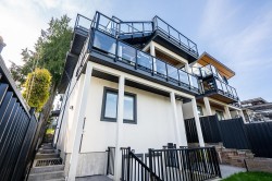 Exceptional 6 bed, 6 full bath home offers breathtaking views of Mt Baker & Burrard Inlet from 3 levels. Chef’s kitchen boasts premium Bosch appliances, double wall oven, oversized island & ample cabinetry. Enjoy seamless indoor/outdoor living w/a covered deck(gas BBQ/heater hookups) & rooftop patio w/gas fire pit hookup & sweeping water & mountain VIEWS! The luxurious primary suite feat a spa-inspired ensuite w/dual vanity, oversized rain shower & deep soaker tub. Smart home feat inc Control4 automation, A/C, radiant heating, smart thermostats, video security, and b/i central vac. The lower level incl a spacious family rm, flex space w/separate entrance, and a newer legal 2 bed suite complete w/kitch & laundry,ideal for rental or extended family. Bonus EV level 2 charging! Shows like NEW!