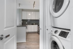 Welcome to Polygon’s Veritas in the heart of SFU’s UniverCity. This bright 2-bed, 1-bath home offers 767 sq.ft. of efficient living with 9' ceilings and a smart, open layout. The gourmet kitchen features quartz countertops and stainless steel appliances, opening to a comfortable living and dining area. The primary bedroom enjoys direct access to a covered balcony, your quiet spot for morning coffee. A spacious 5-piece bathroom (separate tub and shower, double vanity) serves both bedrooms. Full-size front-load laundry, radiant in-floor heating and hot water included in the maintenance fee. Secure parking, plus access to the building’s gym and amenity room. Move-in ready and steps to campus, transit, shops, cafes, and endless trails. Easy to Show!