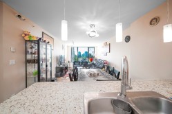 Welcome to West at Highgate Village, a quality BOSA-built concrete tower in prime Burnaby South. This bright south-facing 3 bed 2 bath home on the ideal 5th floor is perfect for families—not too high, not too low. UNIQUE to the 5th floor: ACCESS to THREE elevators and TWO separate entry points, offering unmatched convenience and safety—no more long elevator waits! Thoughtfully designed layout with no wasted space. Spacious primary bedroom. Granite counters in kitchen and baths, newer laminate floors. Large covered balcony with access from living room and bedroom. Includes TWO secure underground parking stalls and ONE storage locker. Amenities: gym and lounge. Steps to bus, Save-On, Shoppers, Club16, Starbucks, banks, clinics, library, Edmonds Centre, parks and more.Pet and rental friendly!