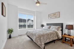 Your Forever Home Awaits! This stunning home sits in one of the most sought-after communities, surrounded by 10 acres of greenspace and 4 km of nature trails, offering perfect blend of tranquility & modern comfort. Step inside to a spotlessly maintained open-concept layout featuring a bright living and dining areas, & sleek gourmet kitchen with developer-upgraded Samsung glass-top range, matching fridge,over-the-range microwave, plus a new garburator for added convenience. The EV plug is already installed & ready to use! Enjoy outdoors from your large deck with a bonus gas BBQ hookup with quick access to the playground just steps away. The primary bedroom boasts a walk-in closet & a spa-like ensuite with a walk in shower. Two additional bedrooms & a full bath . Low $70/month HOA fees.