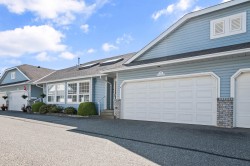 Perfect home in the perfect location! Central Sardis Rancher with Loft home with 2 Primary Bedrooms with ensuite baths. This is a great layout for retirees that want to entertain and have company stay with them. Lots of natural light. Fresh interior paint. Amazing loft space with 17' x 20' Family room. You will love the quiet and private yard with covered patio backing onto a bubbling brook. Double Garage and crawl space for more storage. New Furnace, AC and HWT in 2022. Heated Tile floors in both baths. Close to shopping and restaurants as well as doctors clinics. Quick Freeway access. Bring your ideas and make this home yours! 55+ Age Restricted. Well run Strata. 1 pet allowed (dog or cat). Dogs allowed up to 26 lbs/12kg