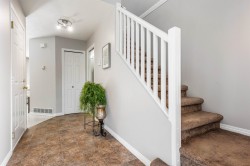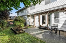 Charming 3 bed, 2 bath townhome in a quiet, family-friendly neighbourhood close to schools, recreation, shopping & transit. Bright open-concept main floor with spacious kitchen featuring newer SS appliances (2022), modern countertops & soft-close cabinets, flowing into the living area with cozy gas f/p. Upstairs boasts a large primary bedroom with ensuite access to a 5pc bath w/dual vanity, plus 2 more bedrooms & laundry. Recent updates: HWT & roof (2018), W/D (2021), dbl garage w/new door. Move-in ready & perfect for families!