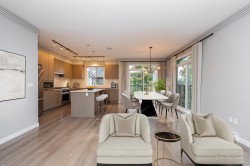 Outstanding opportunity to own this stunning, former SHOW HOME, end-unit at Polygon’s Kentwell. This 1680+ sq/ft, 4 bed 3 bath home is quietly nestled against serene greenery and boasts a beautiful open layout, with designer finishings and plenty of natural light. Designer extras include granite fireplace, custom built-in's, garage flooring and window treatments. Gourmet kitchen with modern appliances and central island, plus access to south facing balcony - perfect for hosting. Bright living and dining area, plus powder room on main. Up features 3 bedrooms, including the primary with WIC and spacious en-suite, plus side-by-side laundry. Down has a fourth bedroom /office, with custom built in’s and double car garage. Directly across from beautiful Riley Park. *Some photos virtually staged.