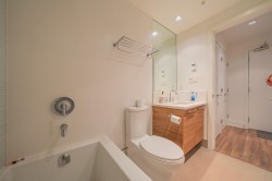 Welcome to M3 by Cressey, Coquitlam's tallest and most sought-after tower. This 2bed/2bath home also includes a spacious den with a large window, easily used as a third bedroom. The southwest-facing corner layout, 9' ceilings, floor-to-ceiling windows, air conditioning, and an efficient floorplan designed for modern living. The signature CresseyKitchen is equipped with Blomberg & Fulgor Milano appliances, double refrigerators, and a wine cooler. Enjoy sweeping, unobstructed views from every room. The primary suite features a spa-inspired ensuite with radiant heated flooring. Exclusive access to the Summit Club on the 47th & 48th floors, offering 9,000 SF of world-class amenities including gym, lounge and entertainment spaces. Just steps to Coquitlam Centre, SkyTrain, Lafarge Lake and more.