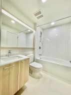 THE OAKS by prestigious Developer - Strand. Highly sought after 2 bed & 2 bath layout is spacious & situated in a family-friendly area of Burquitlam. This unit has everything; laminate flooring throughout, spacious kitchen with coveted island & plenty of counter space, full-size appliances including gas stove, integrated dishwasher & washer/dryer. Balcony overlooking the quiet courtyard with perfect views to SFU Mountain. Separated bedrooms are perfect for families with primary offering spa-like ensuite! Resort-like amenities include workspace w/ Wi-Fi, outdoor BBQ area, games room, theatre, gym, library, lounge & playground. Comes with 1 Parking & Storage. Walking distance to SkyTrain, Mall, SFU, Schools, Parks, Restaurants, Groceries. Open House Sat Dec 6 from 2-4 pm.