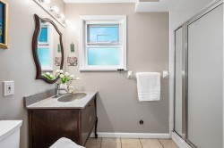 Escape to your serene retreat in this 4 bedrm, charming home, perfectly positioned on a quiet street with a tranquil greenbelt backdrop. The stunning south-facing 27 x 22 sundeck is the ultimate haven, bathed in warm sunlight & offering breathtaking views of the lush surroundings. Picturesque mini courtyard, adorned with lush grapevines, invites you to linger & enjoy the peaceful ambiance. Inside, the home's beautiful windows filter in abundant natural light, highlighting the care and attention that has gone into its upkeep. With updates like new windows, a newer roof, and a new furnace, this home is move-in ready. Plus, the basement's potential is undeniable - easily convert it into a full suite with a separate entrance, perfect for a rental opportunity or multi-generational living.