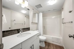 Welcome to one of the most desirable spots in Courtenay. This top-floor, 2bdr/2bth corner condo offers spectacular views of the Puntledge River the estuary, and surrounding mountains. From your wraparound deck or bright open-concept living room, you’ll love watching eagles soar and seals fishing in the river. The modern kitchen is both stylish and functional with quartz counters, stainless appliances, a built-in desk, and a peninsula perfect for casual gatherings. The spacious primary suite includes a walk-in closet and full ensuite for comfort and privacy. Added touches like an HRV for fresh, efficient airflow, a storage locker located on the fourth floor, and underground parking close to the elevator make life easy. The building is pet and rental friendly, and features a welcoming lounge and bike storage. From the Riverway trail, you can walk or cycle to downtown Courtenay or enjoy the scenic ride to Royston. A beautiful home in a setting you’ll treasure every day with your coffee.