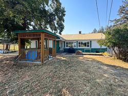 Situated just on the edge of the city limits with stunning mountain views, this rare 0.26-acre property offers the perfect blend of space, comfort, and convenience. The 1,420 sq. ft. bungalow has been thoughtfully maintained and upgraded, featuring three spacious bedrooms or 2 + den, two beautifully updated bathrooms, and the added convenience of main floor laundry with front-loading machines. The bright kitchen and dining area flow seamlessly in an open floor plan, while the living room showcases hardwood floors and a charming wood brick fireplace as a cozy focal point. A side enclosed porch leads to a partial basement, providing abundant storage and direct access to both the single carport and the backyard. Practical updates include a high-efficiency furnace installed in 2022, new electrical service, a hot water heater replaced in 2018, and updated vinyl windows completed in 2010/11. Connected to city sewer just three years ago and supplied with city water, this home is move-in ready. The beautifully landscaped yard is complete with a gazebo, garden beds, and generous RV parking, making it a true gem for those seeking both lifestyle and location.