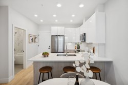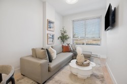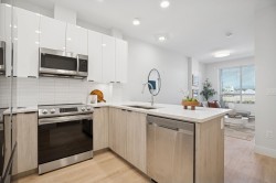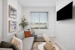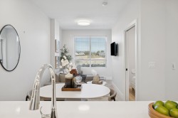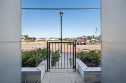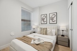 Newly Renovated and move-in ready! This 1 bed, 1 bath unit in the sold-out GENESIS by Whitetail Homes offers 460 sq ft of bright, open-concept living. Closet new project in Langley to future skytrain station. Recently fully redone after an insurance claim, it features brand new quartz counters, stainless steel appliances, wide-plank laminate flooring, and a spa-style bath and 9 foot ceilings. Enjoy year-round use of the covered patio and ground level entrance. The building offers excellent amenities including a gym, landscaped courtyard with putting green, and meeting rooms, Located steps from future SkyTrain, shopping, restaurants, and schools. Rentals and 2 pets allowed-ideal for investors or first-time buyers!