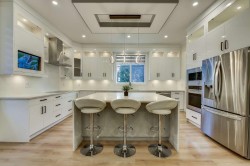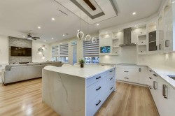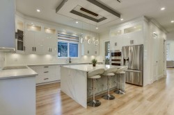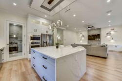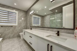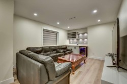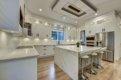 Welcome to this elegant West Coast-inspired home, offering 5,500 sqft of refined living space on a 7,850 sqft lot. The main floor features open, luminous living and dining areas, a versatile master or guest bedroom, and a cozy family room with a striking entertainment wall. The chef’s kitchen is a culinary delight, with a spacious island, quartz countertops, designer backsplash, and a bonus spice kitchen. Upstairs, enjoy a loft and four bedrooms, each with ensuite baths and walk-in closets. With two mortgage helpers, built-in speakers, smart thermostats, radiant heating, AC, and steam showers, this home offers both luxury and convenience. This home combines exquisite design with practical features, making it the perfect choice for those seeking an elevated lifestyle. Don’t miss this!!