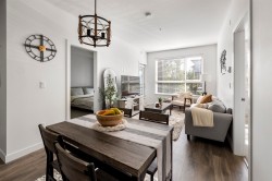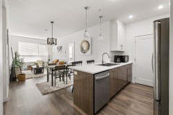 Immaculately kept, this 2 bed 2 bath condo with a den is located in the heart of Willoughby. Offering a bright, open concept living space, the kitchen features stainless steel appliances and a breakfast bar. The primary bedroom comes with an ensuite, the second bedroom is perfect for guests or a home office. The den offers flexibility for work or leisure. Situated in a quiet, private setting facing the courtyard, this condo is just steps away from Willoughby Town Centre, offering shopping, restaurants, and grocery stores. Plus, you’re less than 10 minutes to Highway 1, making commuting a breeze. Its an unbeatable location don’t miss your chance! Contact us for a private showing.