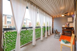 Yorkson Park Living at its best! This is a South Facing unit - 3 spacious bedrooms with a sound-dampening acoustic package, 2 full bathrooms with heated floors, and year-round comfort with air conditioning and an energy-efficient heat pump. Enjoy a 200+ sq ft enclosed solarium with a gas BBQ hookup, plus 2 underground parking stalls, and a large private roll-up storage locker with a capable EV charger outlet, enough space for paddle boards and an EV Bike. Throughout: laminate floors and custom wood closets. A Gourmet Kitchen with stainless steel appliances: 5-burner gas cooktop, double oven, quartz counters & walk-in pantry/storage. Enjoy the amenities such as a Gym, walking paths, a recreation room, and a playground. Steps to the Carvolth Bus Loop and easy access to Hwy 1.