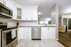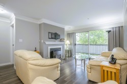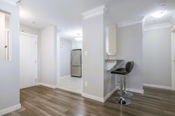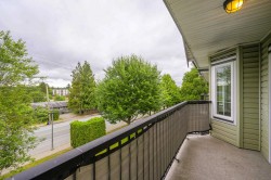 Welcome to Robert’s Court! This bright, top-floor, south-facing 2 bed, 2 bath condo offers 1,026 sq. ft. of well-designed living space. Enjoy an open layout, updated kitchen with stainless appliances, white cabinets, and subway tile backsplash. Bedrooms are on opposite sides for added privacy, with a 4-piece ensuite in the primary. Crown moulding, a large laundry room, and extra storage complete the home. Building amenities include a gym and social lounge. Steps to Fraser Hwy, transit, shopping, parks, schools, and Kwantlen University. Pet-friendly - 1 dog (max 18kg at maturity) and 1 cat, or 2 cats. A great start for first-time buyers!