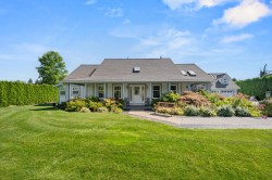 Luxury living in Langley’s sought-after Strawberry Hills! This bright, private 6,026 sq.ft. 4 BED/6BATH custom home sits on a private 1-acre estate designed for seamless indoor/outdoor living. Elegant wainscoting, detailed millwork, and timeless traditional styling create a warm, sophisticated feel. The main-floor primary bedroom offers a spa-like ensuite and walk-in closet, while a beautiful guest suite is ideal for extended family. The backyard is an entertainer’s dream with a covered outdoor kitchen, cabana with bathroom & gym, pool, and hot tub — your own resort at home. A detached workshop/garage with loft and a fantastic custom-built greenhouse add versatility for hobbies and lifestyle. A rare combination of craftsmanship, comfort, and outdoor living in an irreplaceable setting.