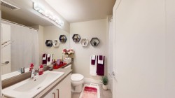 Welcome to Woodland Park, the premier location in Willoughby Heights built by Infinity. This craftsman-style townhouse offers an open-concept layout with 1,265 sq. ft. of living space, featuring 2 bedrooms, a den, and 3 bathrooms. Highlights include 9' ceilings on the main level, forced air heating, large Energy Star windows with 2" faux wood blinds, and a functional kitchen equipped with stainless steel appliances, polished quartz countertops, tile backsplash, a five-burner gas range, and convection oven. The ground level includes a den and powder room for added convenience. Ideally situated near Hwy 1, Yorkson Creek Trail, Carvolth Exchange, transit, schools, shopping, and parks such as Yorkson Community Park and Dorothy Peacock Park.