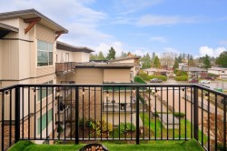 Experience modern living at its finest in this top-floor 1 bed + den at Kensington Park, crafted by Quadra Homes. Boasting 752 sq. ft. of thoughtfully designed open space, this unit features stainless steel appliances, granite countertops, solid maple raised panel cabinet doors, a built-in microwave, and garburator. 7ft solid fir interior doors, High ceilings throughout, Cathedral ceiling in livingroom, built-in A/C, and elegant laminate & tile floors create a bright, inviting atmosphere. Enjoy in-suite laundry and a covered patio with stunning Mount Baker views. With superior soundproofing and concrete-topped floors, plus proximity to schools, transit, and shopping, this home perfectly balances comfort, style, and convenience.