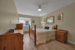 Beautifully updated and meticulously maintained, this bright ground level 2-bedroom, 1-bath townhouse offers an open floor plan, neutral colours, and modern finishes throughout. Enjoy a renovated bathroom with a walk-in shower, new appliances, and easy-care vinyl plank flooring. The enclosed patio features privacy-film windows—allowing you to see out while keeping the inside private. This well-run complex offers an amenity room with full kitchen, workshop, community garden, and raised beds. A wonderful and affordable place to retire.