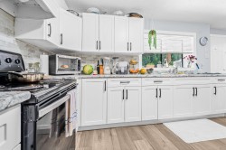 Beautifully well kept split-level rancher on a spacious 6,500 sqft lot with great development potential—zoned for duplex or hold for future Attached Multi-Unit Residential (buyer to confirm with City). This home features 3 bedrooms and 1 bath up, plus a 3 bed/1 bath walk-out suite with separate laundry. Currently rented for $4,250/monthly. Upgrades include new flooring, cabinets, counters, vanity, toilet, and plumbing in the suite, as well as an updated main kitchen and bath. Enjoy indoor-outdoor living with 12 ft glass doors leading to a 269 sqft south-facing deck and private fenced yard. Enclosed carport is wired—ideal as storage, workshop, or for future ideas. Conveniently located near shops, restaurants, transit, and West Coast Express!