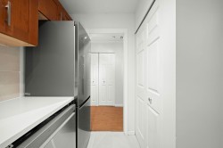This beautifully and recently updated 620 sqr ft home features 1 bed, 1 bath condo at Regency Court in Uptown New West. Ideal for first-time buyers ready to stop renting and start building equity. The buildings proactive strata recent updates include: New Roof, repiping of the building, new parking lot membrane, new boiler system, and the exterior all repainted. The home itself has been Fully Renovated within the past year, this move-in ready home features stylish, modern finishes throughout. From the fresh paint and updated flooring to the sleek kitchen with contemporary cabinetry and appliances. Located just steps from shopping, restaurants, recreation, and all essential amenities. Don’t miss out – make Regency Court your new address today! Some photos are virtually staged.