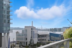 Welcome to Trapp + Holbrook, a modern concrete high-rise in the heart of historic Downtown New Westminster. This spacious 728 sqft 1 Bed + Den home (can function as a Jr 2 Bedroom) features an open-concept layout with 11’ ceilings, oversized double-glazed windows, and stainless steel appliances. The den has been upgraded with a loft-style design, maximizing both space and functionality. Includes 1 parking and 1 locker. Prime location, just steps to SkyTrain, groceries, restaurants, and vibrant Waterfront River Market at Westminster Quay. Amenities include a rooftop garden, gym, lounge, BBQ area, and sundeck with Fraser River views. Perfect for first-time buyers, small families, or investors seeking a stylish and practical home. A must see!