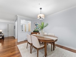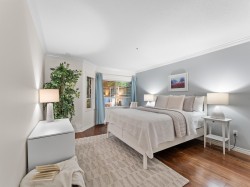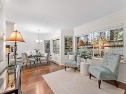 Welcome to Parkgate Manor. This beautifully reimagined ground-floor home combines quality, style, and convenience. Updated with a designer’s eye, it features stunning hardwood floors throughout, a massive primary bedroom, spa-inspired bathrooms with heated floors, a laundry room, and a spacious open layout ideal for modern living. Downsizers will appreciate the easy access and generous storage, while families will value the flexible floor plan. Parkgate Manor is a well-managed community that welcomes cats (no dogs). Enjoy the convenience of being just steps from the library, recreation centre, coffee shops, groceries, and more. The Mt. Seymour shuttle is nearby for quick access to the ski hill. Move-in ready and perfectly located, this home offers an exceptional North Shore lifestyle!