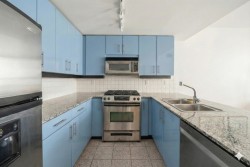 LOCATION LOCATION LOCATION. Perched on the 21st floor, this refined 1 bed & Den unveils panoramic vistas of the North Shore mountains and glistening ocean. The intelligently designed layout features an elegant, open-concept kitchen that transitions effortlessly into expansive dining and lounging areas, while the secluded primary suite provides a serene retreat. Premium comforts include a gas cooktop, full AIR CONDITIONING, and an inviting balcony perfectly suited for sunrise coffees or golden-hour unwinding. AC, heat, and gas are all incorporated into the maintenance fee. Residents enjoy an array of hotel-inspired amenities, including an indoor swimming pool, state-of-the-art fitness centre, hot tub, and more. Tenanted above market value at $2650/month. Contact listing agent for details