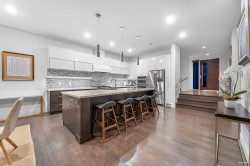 VIEW, LOCATION & QUALITY! Built in 2014, this stunning contemporary home showcases breathtaking southwest views of the ocean, Downtown Vancouver, Point Grey & Vancouver Island. The main floor features a spacious open-concept layout with 10ft ceilings, a designer kitchen with high-end appliances, & Eclipse doors that open to a large sun-drenched deck with built-in BBQ—part of over 900 sqft of deck & balcony space, ideal for seamless indoor-outdoor living & entertaining. Upstairs offers 3 generous bedrooms, each with its own ensuite & beautifully appointed finishes. The lower level includes a media room, 4th bedroom, full bathroom, & laundry, plus a self-contained 1-bedroom suite with full kitchen—perfect for in-laws, guests, or added income. Open house Canceled on Sunday 2-4pm, Oct 19.