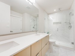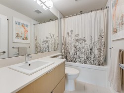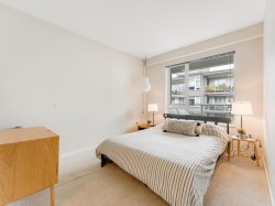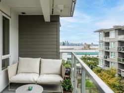 Location & lifestyle in Lower Lonsdale at West Quay by Polygon. This west facing modern, bright, 2-bed, 2-bath home features a flexible modern design and layout, 9-foot ceilings, quality finishings, radiant heat flooring, a great primary suite and ensuite, in suite laundry, stainless steel appliances, gas stove. Enjoy the balcony with partial downtown and harbour views. The location is central to all that the vibrant Lower Lonsdale waterfront community offers and a central starting point to all the North Shore lifestyle amenities. Steps from SeaBus, transit, waterfront park, Spirit trail, Shipyards, The Quay and all the restaurants/breweries, shops & services. West Quay offers an exercise centre, bike room, social lounge, elevator, wheelchair access. The property has 1 parking & storage.