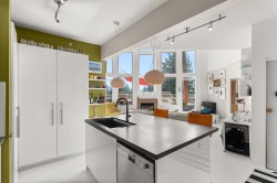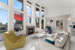 This Penthouse is not to be missed. Stunning southwest exposure with Ocean, Van City & Forest Treetop views. The second you walk in the home you are greeted by vaulted ceilings & walls of windows that capture Natural light. The open concept upscale kitchen & prep island contain high end appliance package & looks out to marvelous vistas thru the windows. A natural gas fireplace accents the living, dining & reading areas. Bedrooms are separate sides of the home & with easy access bathrooms. The Primary bedroom has water views while & completely private. The very private 2nd bedroom is our favourite! Majestic Forest views & Downtown Vancouver City skyline! The large wrap around balcony offers you a totally private space with the close up views even better! This is a high end quality home!