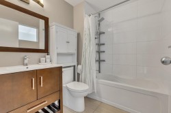 This beautiful 4-bed, 3.5-bath home offers over 2,800 sqft of comfortable living across three levels. The open-concept main floor features a fully renovated kitchen with quartz counters and stainless steel appliances, flowing into a bright living/dining area with hardwood floors and a cozy gas fireplace. Step outside to a large covered deck with a built-in hot tub — perfect for year-round use. Upstairs boasts 4 bedrooms, including a spacious primary suite with a skylit sitting area, gas fireplace, and 5-piece ensuite. The lower level includes a rec room/flex space, full bath, and separate entrance for suite potential. Enjoy a double garage, sunny west-facing yard, and a quiet location near trails, skiing, and top schools.
