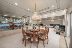 Exclusive Waterfront Mansion in Deep Cove! This extraordinary 10-bedroom, 12-bath waterfront estate in the coveted Dollarton area of Deep Cove offers panoramic, unobstructed views of the open water and surrounding mountains. Built with premium concrete and steel construction, this residence combines durability with timeless sophistication. Spanning 13,000 sqft., the interiors are designed for luxury living and entertaining, featuring expansive living spaces and higb-end finishes throughout. Outside, the beautifully landscaped grounds include a stunning outdoor swimming pool, private tennis court, and a private dock providing direct water access for boating or water sports. Experience the ultimate blend of modern elegance and natural beauty in this rare, one-of-a-kind property.
